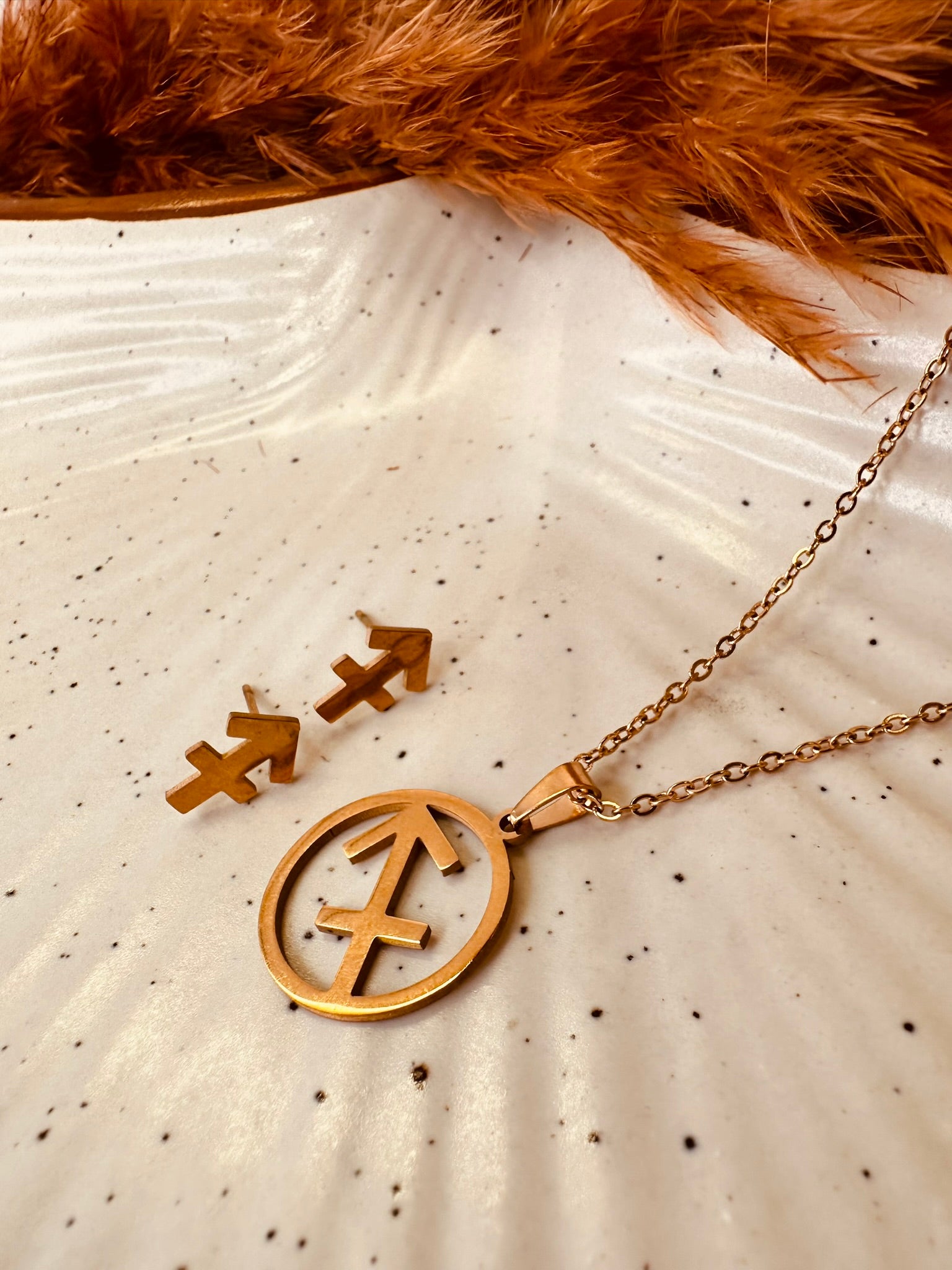 ✨ Celebrate your star sign with the HeyBae Zodiac Pendant & Earring Set in polished gold stainless steel. Designed exclusively for Aquarius (Jan 20 – Feb 18), this set lets you express your personality with timeless style. Whether paired with casual western wear or traditional ethnic outfits, this jewelry makes a statement that’s uniquely you.