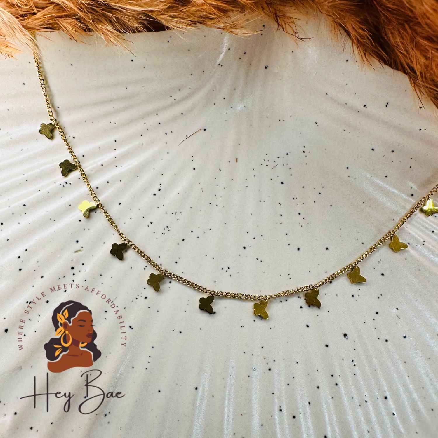 Embrace femininity and elegance with the HeyBae Gold Butterfly Necklace, a timeless chain designed with delicate butterfly links. 🦋 Perfectly blending charm and sophistication, this piece is versatile enough to pair with ethnic elegance or modern western styles.