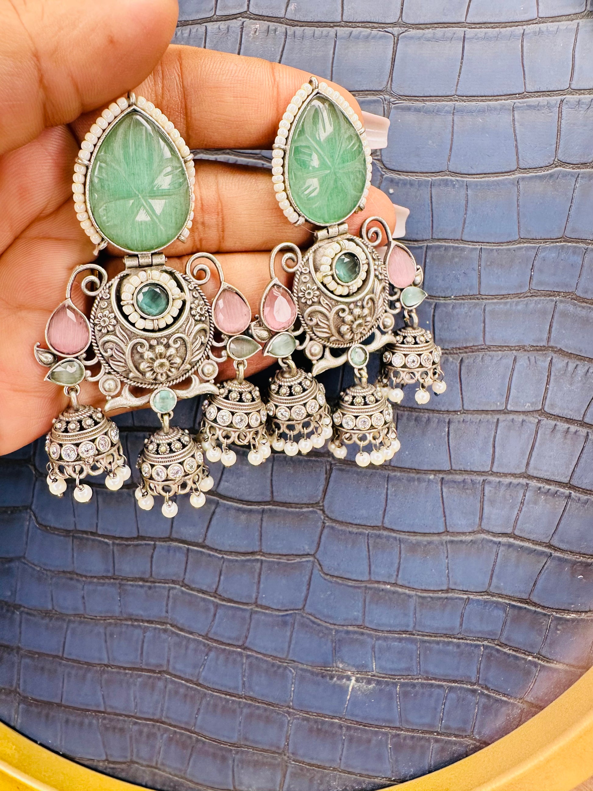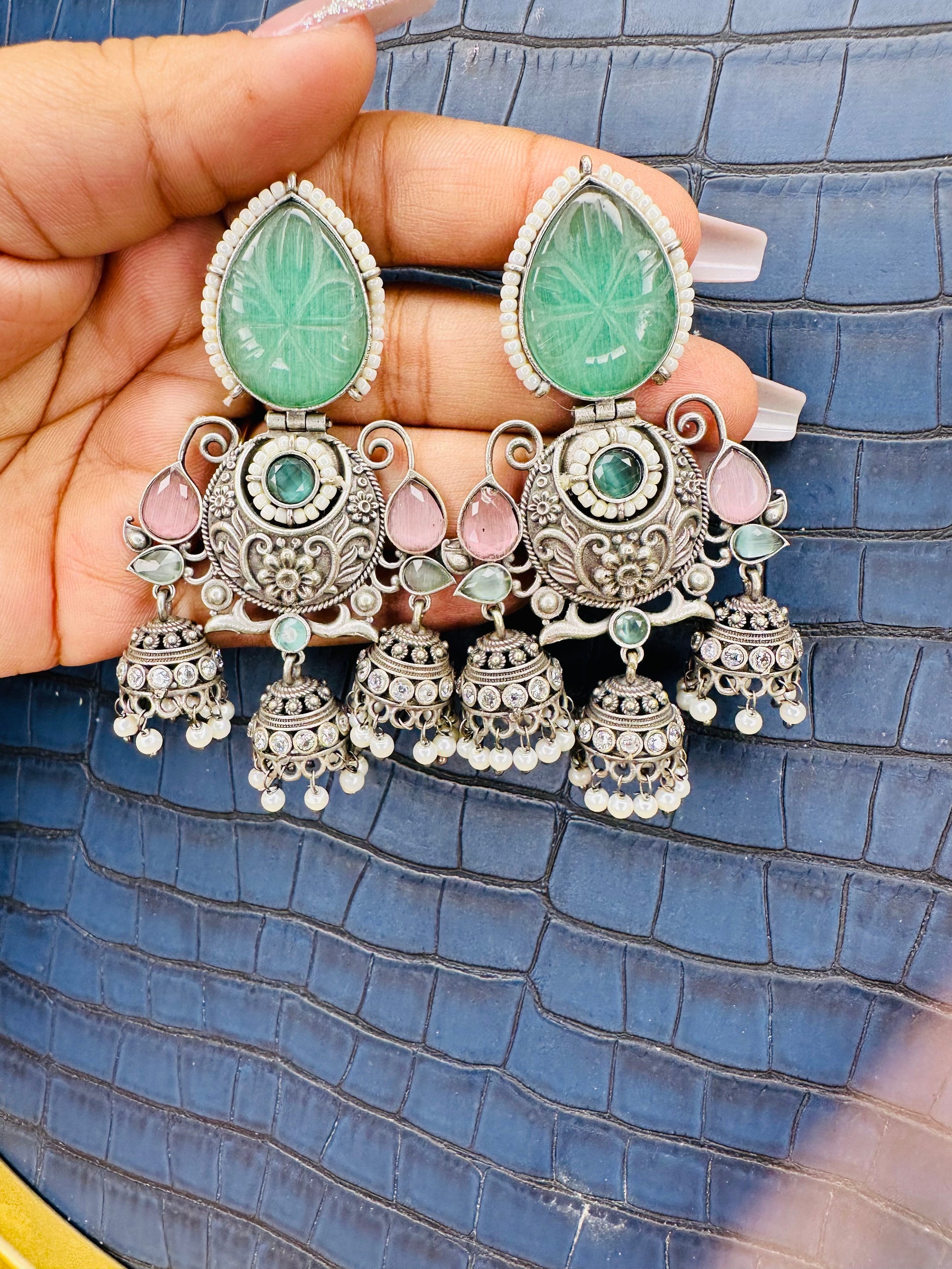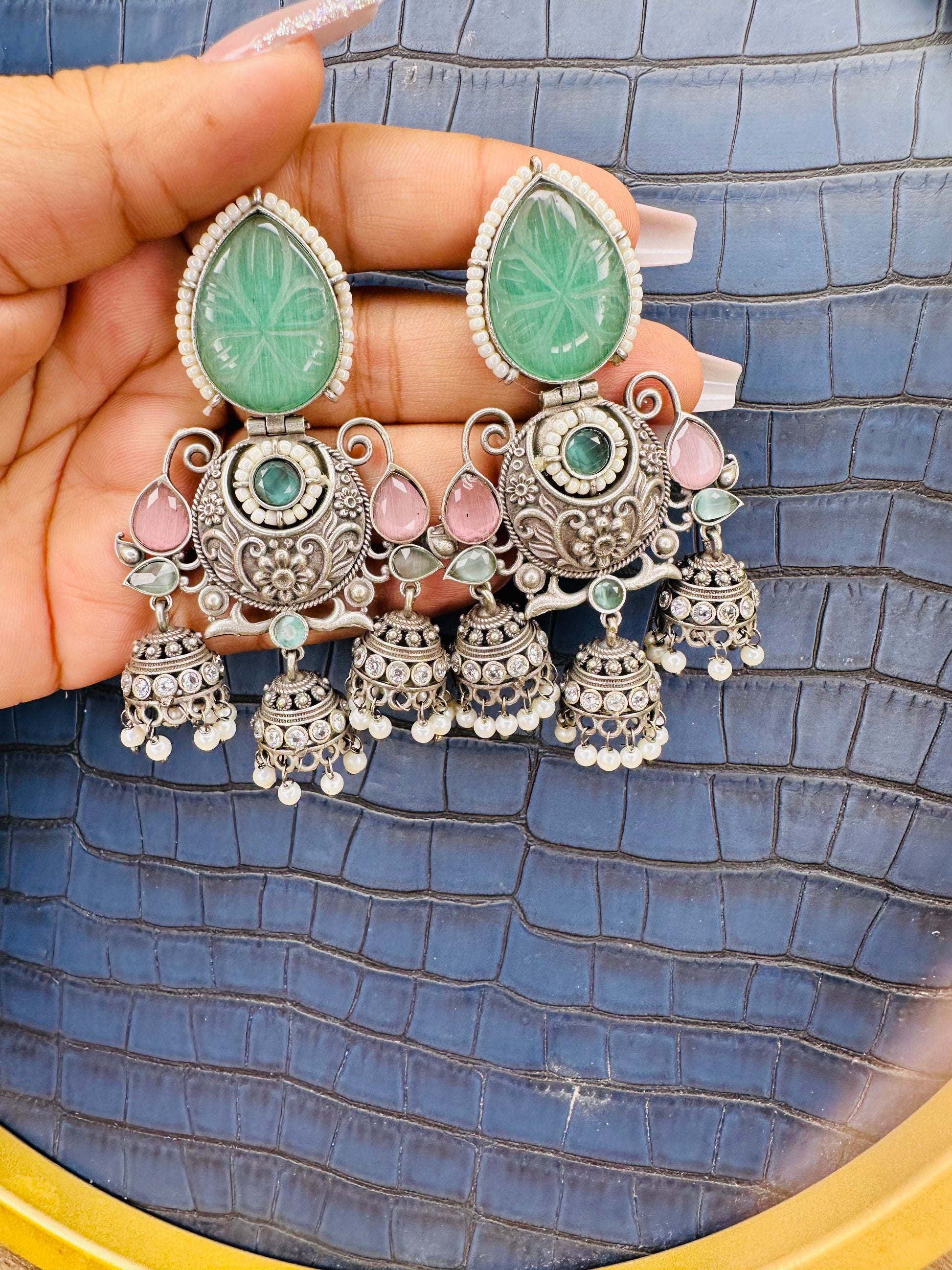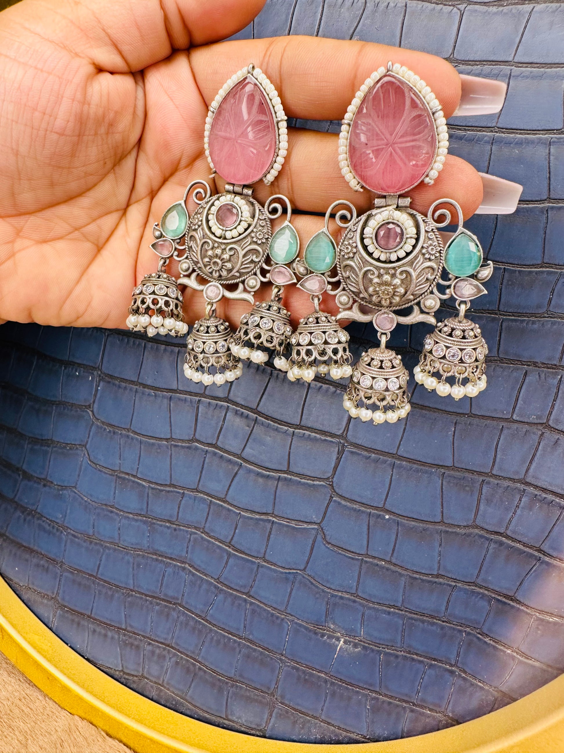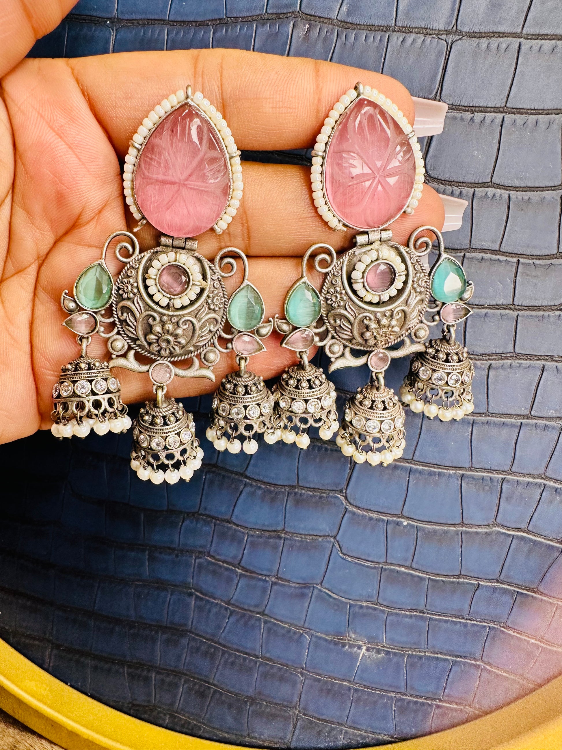 - Big & Bold Design: These large oxidized jhumkas make a statement, perfect for adding drama to any outfit.