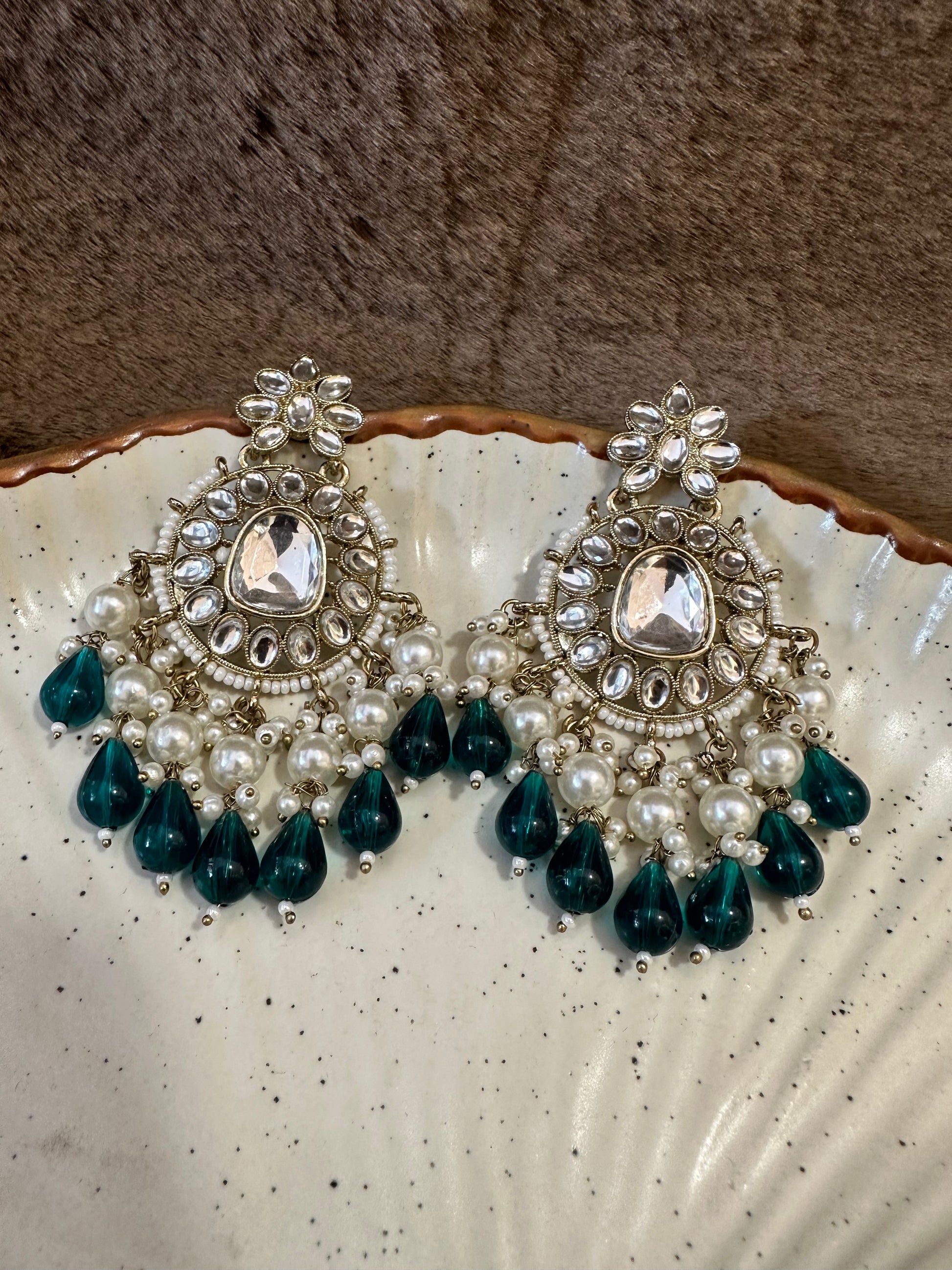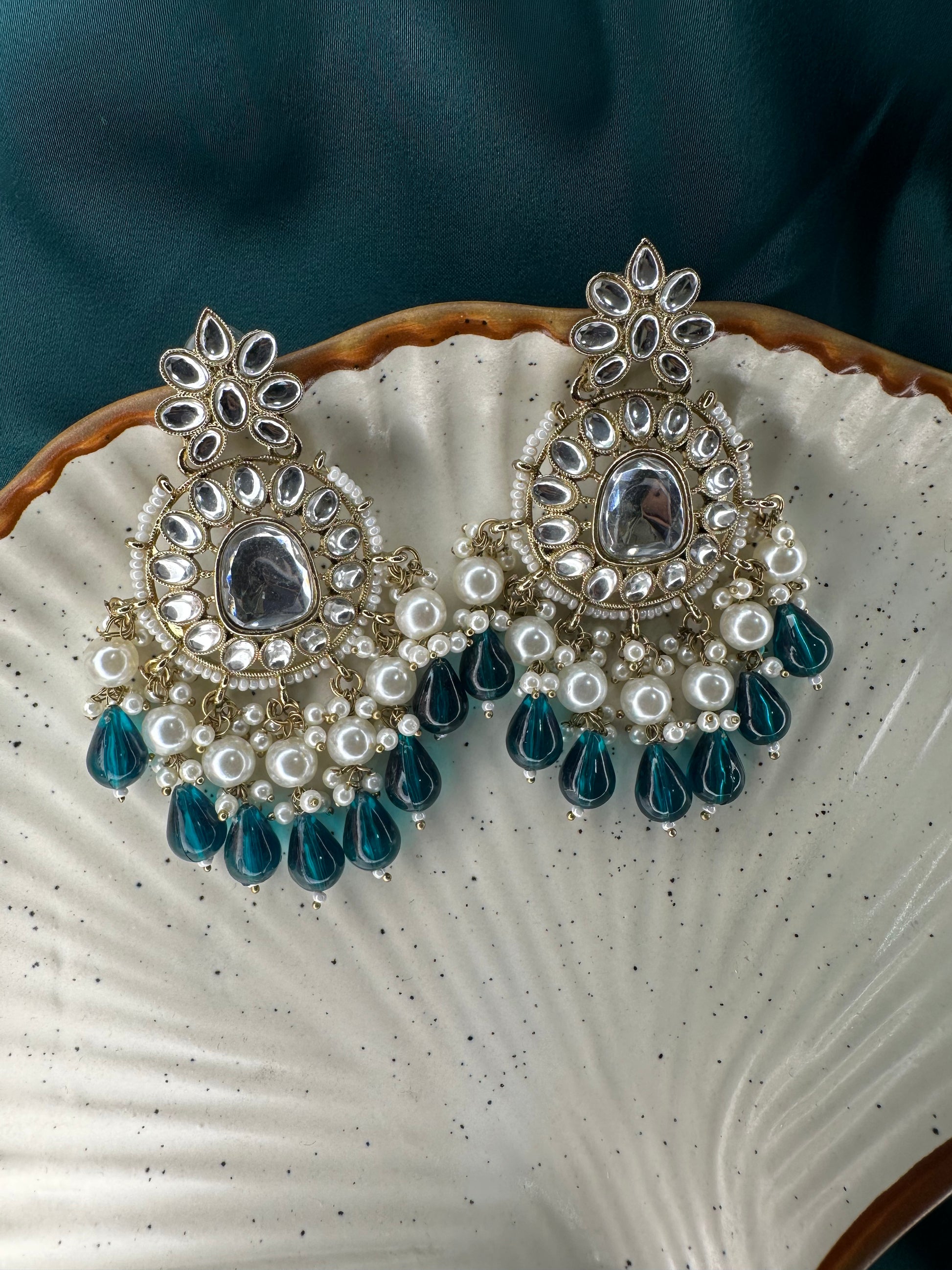 HeyBae Pearl & Green Bead Ethnic Kundan Earrings โ Lightweight