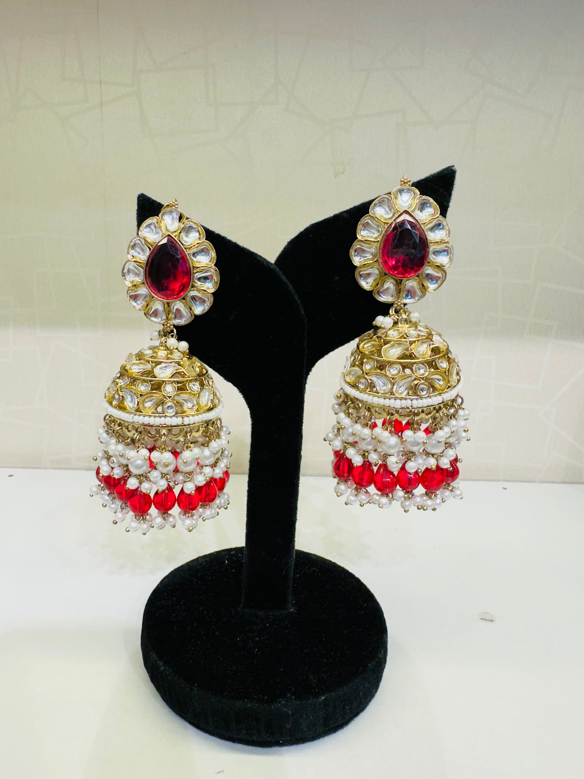 Red Stone & Pearl Kundan Jhumka Earrings – Heybae Jewelry