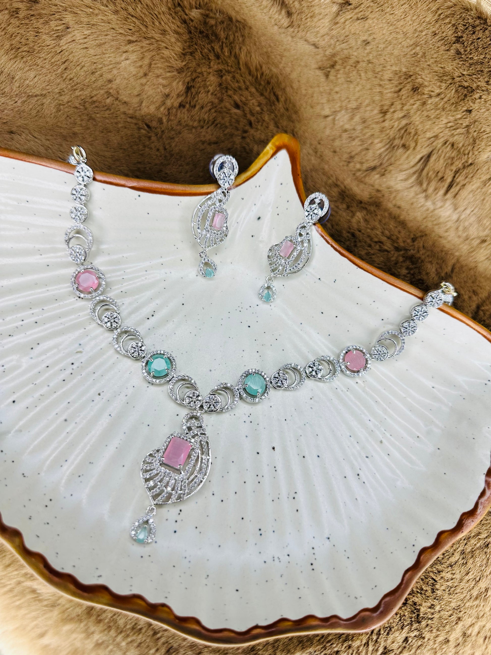 Add a touch of grace and charm to your jewelry collection with the HeyBae Pastel American Diamond Necklace & Earrings Set 🌸. Designed with delicate pastel pink and mint green stones combined with sparkling American Diamonds, this set radiates timeless elegance for both ethnic and western outfits.