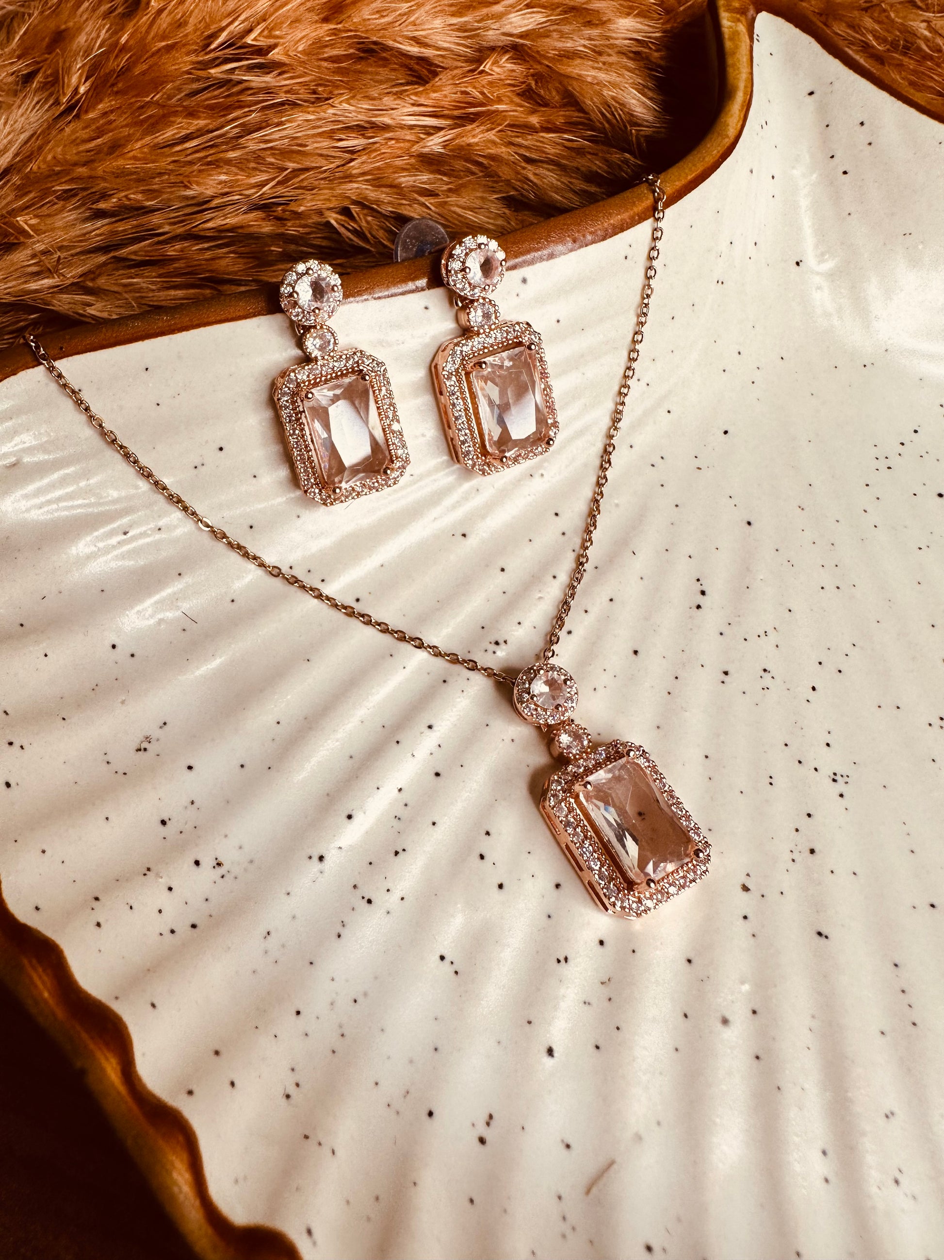 Rose Gold Rectangle Pendant Necklace Earrings Set – Heybae